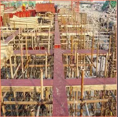 樓板模板:模板支撐體系經(jīng)過嚴(yán)格驗算,并履行審批手續(xù),確保支撐體系的剛度、強(qiáng)度及穩(wěn)定性。嚴(yán)格控制模板起拱高度,跨度大于或等于4m的梁板按2/1000起拱??缍?.4m樓板按1.5cm起拱。