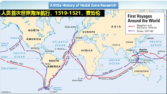 那么世界海洋最深的點在什么地方呢?我們國家有鄭和下西洋,大約是公元1300年左右,鄭和航海最遠的路線是印度洋。而麥哲倫航海的路線是全球航行,去了好幾個大洋。在1521年,麥哲倫曾用繩子梆住重塊、讓重塊在海中下沉,然后不斷放繩子的辦法測量海洋的深度。在馬里亞納海溝區(qū)域,麥哲倫的繩子沒有放到底,他認為馬里亞納海溝最深,但不知具體數(shù)字。