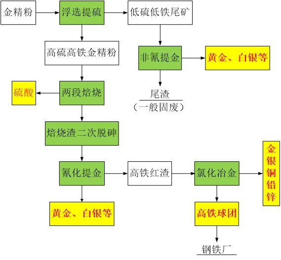 圖4 黃金綠色選冶技術(shù)流程圖