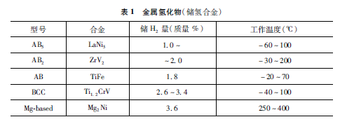 鎳氫電池的負(fù)極材料主要是一個(gè)跟氫結(jié)合很強(qiáng)的元素與跟氫結(jié)合不強(qiáng)的元素,通過適當(dāng)?shù)某煞峙浜?,組成化合物,這樣又能夠吸收氫氣,同時(shí)也能夠放出氫氣的化合物(表1)。一方面可以作為氫氣儲(chǔ)存使用,同時(shí)也可以作為鎳氫電池負(fù)極材料使用,這也是目前最大應(yīng)用領(lǐng)域。