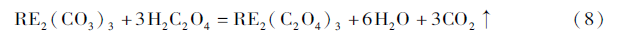 稀土沉淀過程使用沉淀劑進(jìn)行沉淀轉(zhuǎn)型和進(jìn)一步除去雜質(zhì),典型的沉淀劑為草酸(H2C2O4)。其反應(yīng)為: